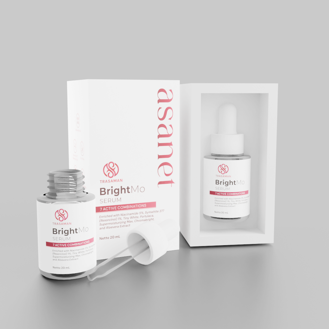 ASANET BRIGHTMO SERUM, serum pencerah dengan 7 Active Combination yang diformulasikan khusus untuk: Mengatasi flek hitam, Mencerahkan kulit secara merata, Melembapkan kulit, Menyamarkan garis halus, Mencegah jerawat.