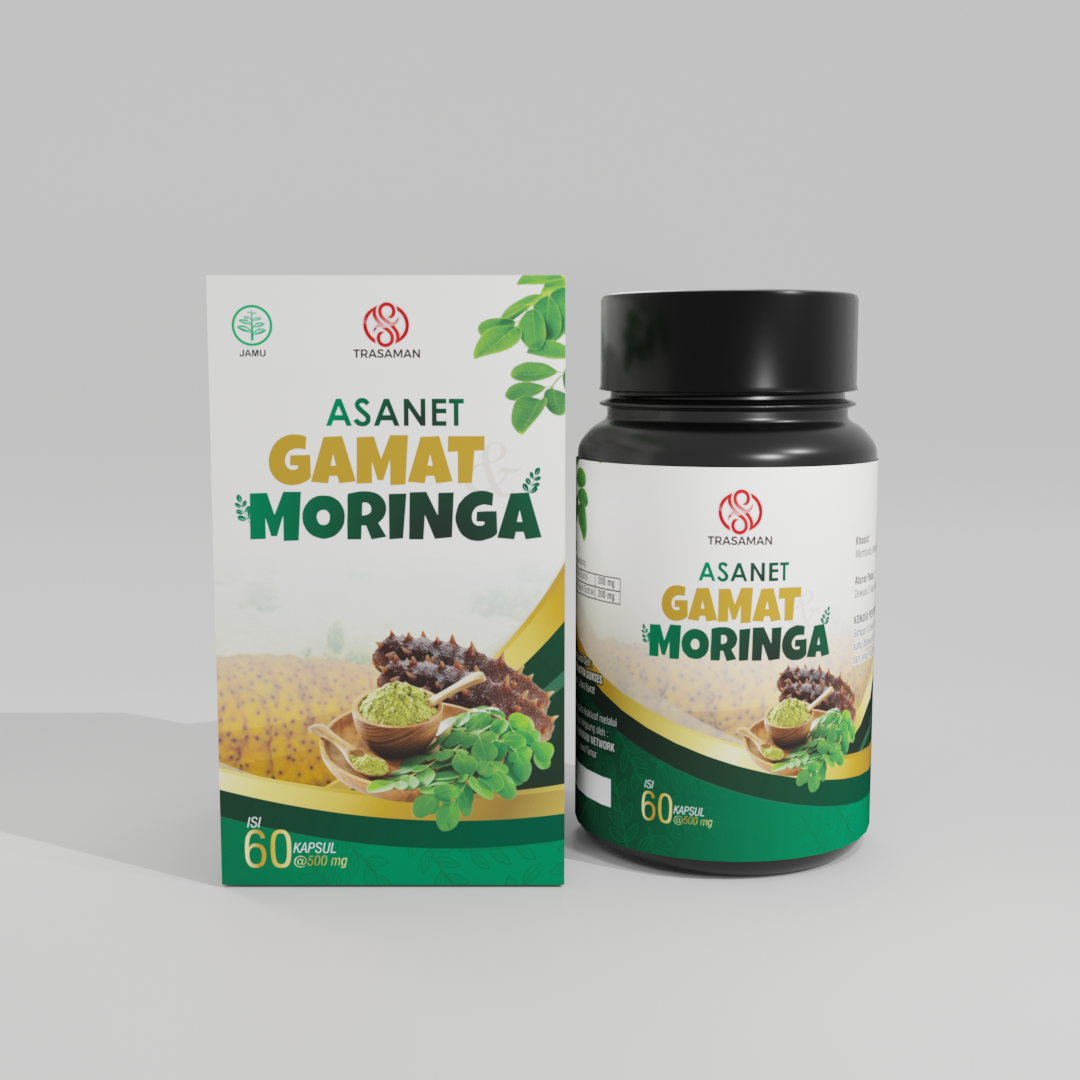ASANET Gamat & Moringa adalah suplemen herbal berbentuk kapsul yang menggabungkan kebaikan ekstrak Gamat (Stichopus hermanii) dan Daun Kelor (Moringa oleifera).
